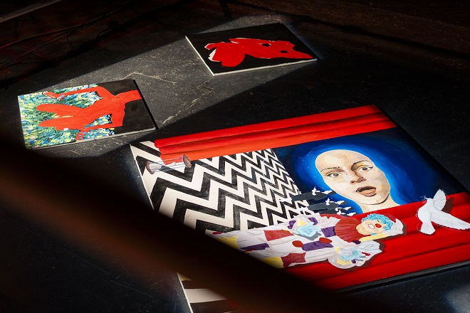Njeni radovi, emocionalni i intuitivni, izloženi su na podu, dok posetioci postaju akteri – izdignuti i osvetljeni, postavljeni „na pijedestal“.